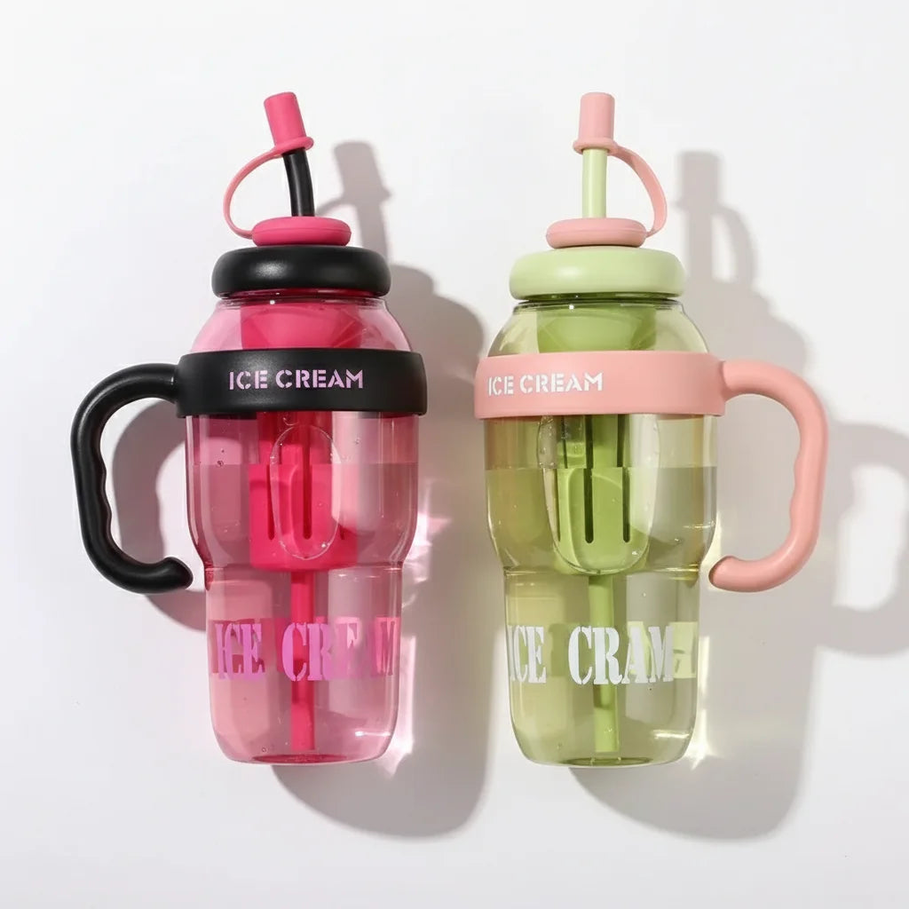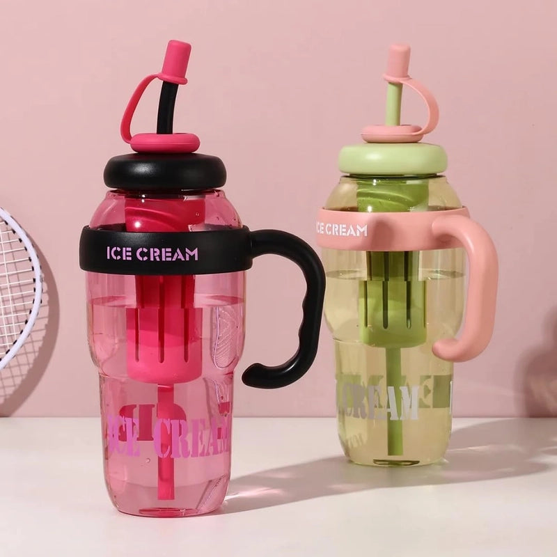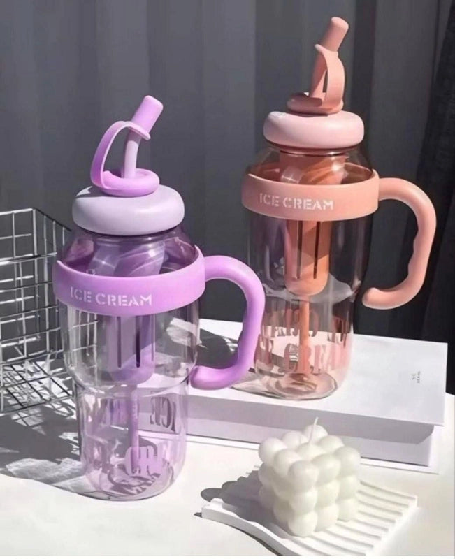 Ditch the boring bottles! Our 1300ml ice bottle keeps you hydrated all day, everywhere. With a comfy handle, easy-sip straw, and playful 'ice cream' design, it's perfect for gym, travel, or school. Plus, it's BPA-free and built to last. Grab yours and make staying refreshed a blast!