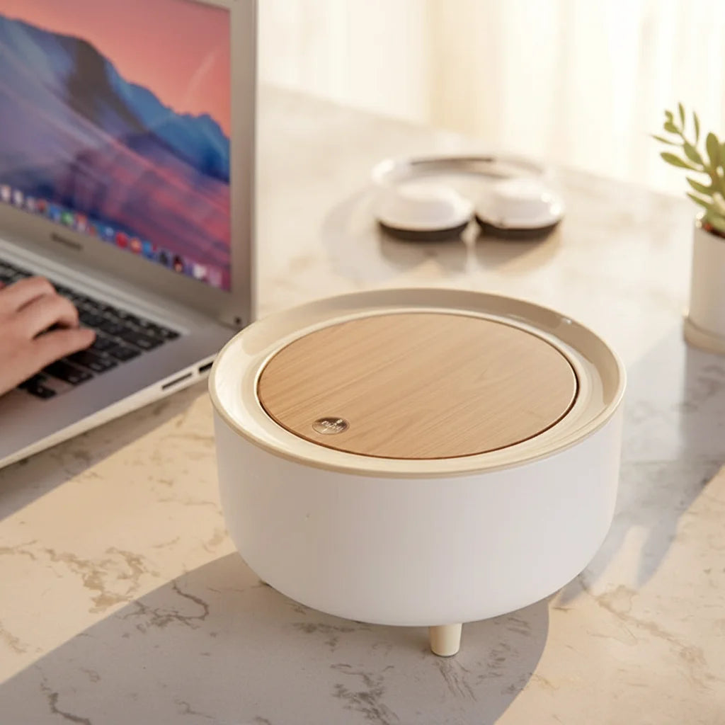 Discover how our Compact Round Tabletop Dustbin effortlessly upgrades your space, keeps things tidy, and simplifies your daily routine.