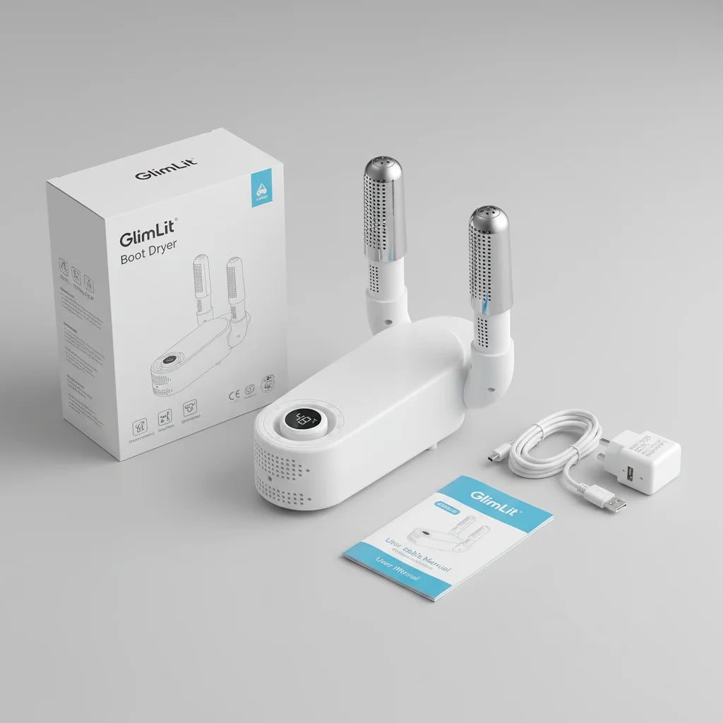 Say goodbye to damp, smelly shoes! Our GlimLit dryer zaps moisture fast, keeping your footwear fresh and ready for anything. It's compact, smart, and a game-changer.