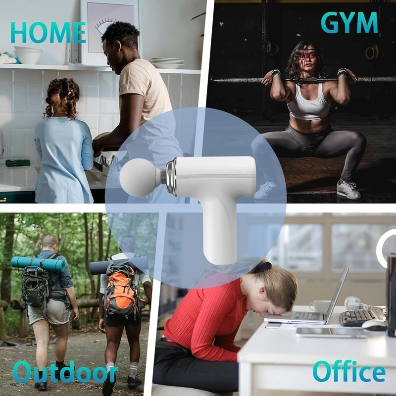 Just pick up your mini massage gun, choose your favorite attachment, and power it on. It's so compact, you can take instant relief with you anywhere. Whether you're at home, the office, or even on the go, deep tissue comfort is always within reach.