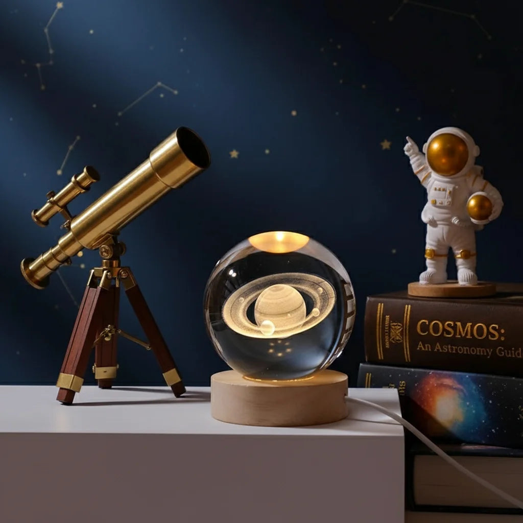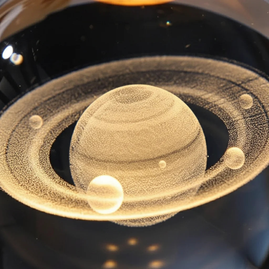 Gaze into a mesmerizing 3D planet with rings, laser-etched inside a crystal sphere. It s like having the cosmos right on your desk, sparking wonder every single day.