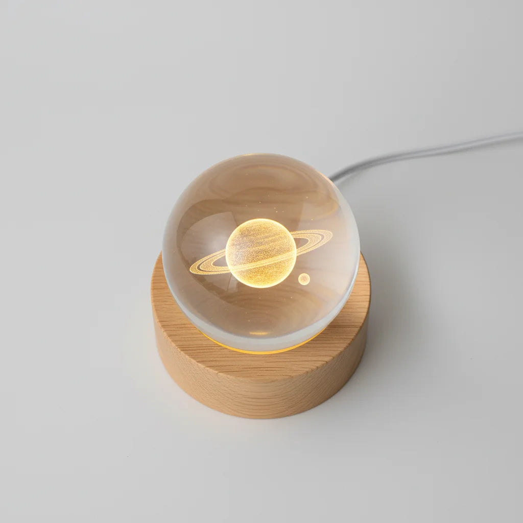 Our Saturn Crystal Ball Night Light features a stunning 3D laser-etched planet with rings, creating a truly mesmerizing and one-of-a-kind cosmic display right in your home.
